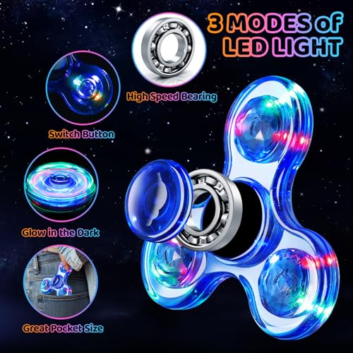 Durable and Sturdy Material: The LED light up fidget spinner is made of high-quality crystal ABS material BPA free. The premium steel bearing provides much smoother and less noise experience whilst spining