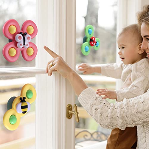 IZLAANA Suction Cup Spinner Toys 3pcs| Baby Fidget Spinners for Babies Unisex under 6 years | Safe and Intresting Baby Spinning Toys for Babies, Baby Suction Spinner Toys for Toddlers (3 pack)