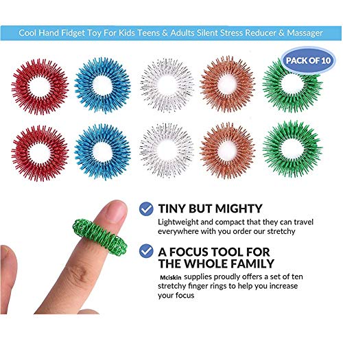 mciskin Spiky Sensory Finger Acupressure Ring Set,Spiky Sensory Ring/Bracelet Fidget Toy,Fidget Toy Relieves Stress Reducer, ADHD, Anxiety, and Autism(13PCS)