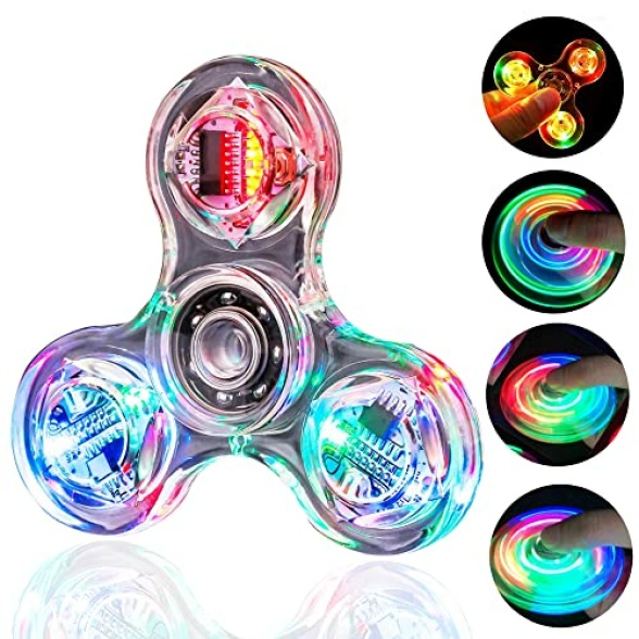 SCIONE Fidget Spinner LED 5 Pack, Party Bag Fillers for Kids-LED Light up Crystal Fidget Hand Spinner, Anxiety Toys Stress Relief Reducer